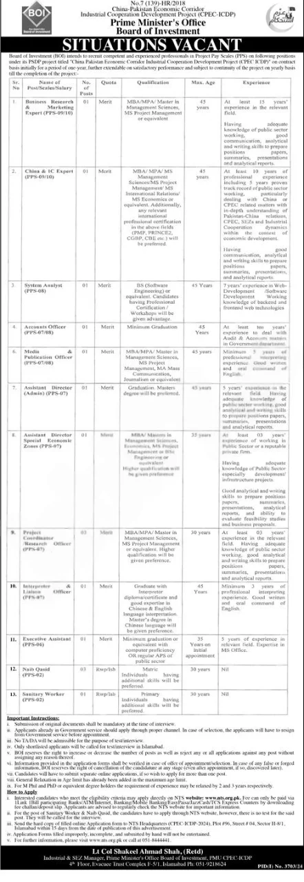 Pak Govt Jobs in Islamabad PM Office 2024 | Multiple Vacancies in Board of Investment