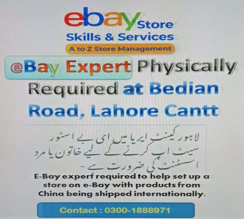 We are currently looking for an E-Bay Expert to help set up and manage an eBay store. This is a full-time on-site role based at Bedian Road, Lahore Cantt.
