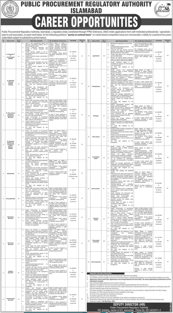This is a great chance to join the Public Procurement Regulatory Authority and contribute to the important work of enhancing procurement standards in Pakistan. Make sure to submit your application by the deadline.